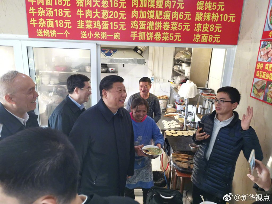2月1日中午,習(xí)近平結(jié)束在北京市前門東區(qū)看望慰問乘車返回途中,特意走進位于前門石頭胡同的快遞服務(wù)點、小吃店,看望仍在工作的“快遞小哥”等勞動者,了解他們工作和生活情況。 ???