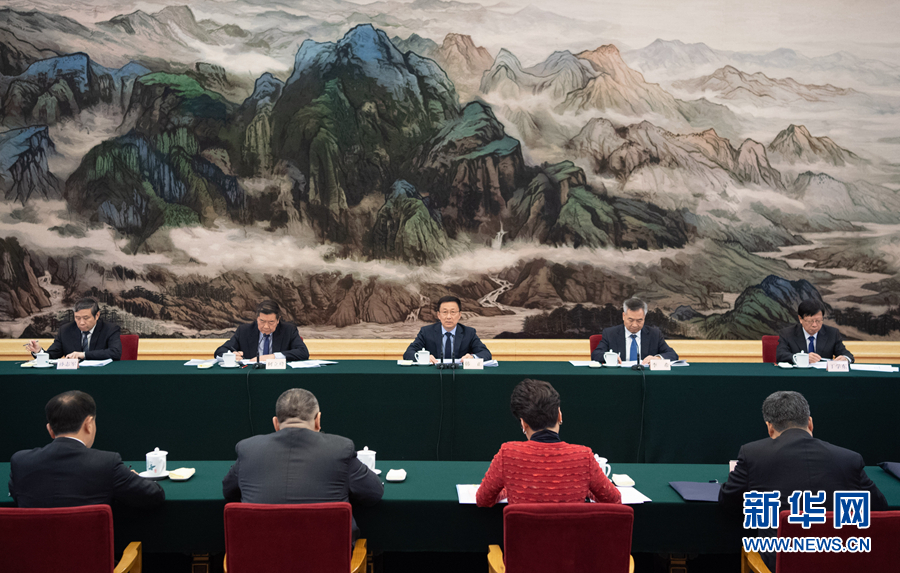 3月1日,中共中央政治局常委、國務(wù)院副總理、粵港澳大灣區(qū)建設(shè)領(lǐng)導小組組長韓正在北京人民大會堂主持召開粵港澳大灣區(qū)建設(shè)領(lǐng)導小組會議。 新華社記者 申宏 攝