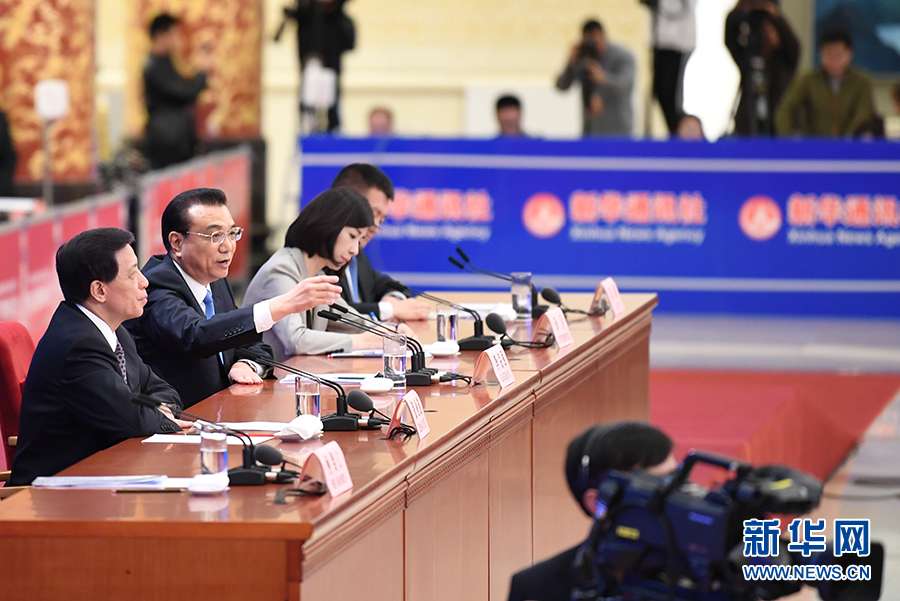 3月15日,國務(wù)院總理李克強(qiáng)在北京人民大會堂會見采訪十三屆全國人大二次會議的中外記者并答記者問。 新華社記者 殷博古 攝
