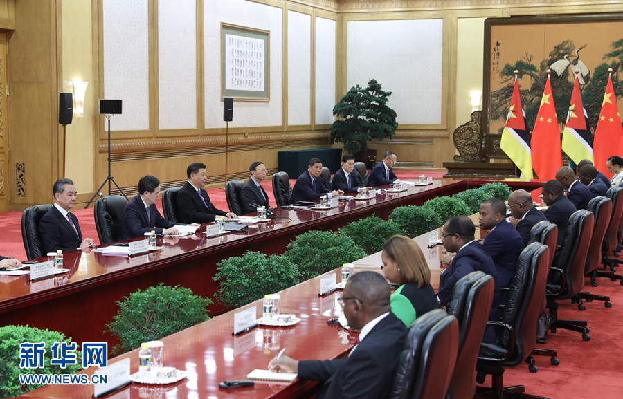 習近平指出,歡迎總統(tǒng)先生來華出席第二屆“一帶一路”國際合作高峰論壇。在本屆論壇上,各國領(lǐng)導人將本著共商共建共享原則,討論發(fā)展政策對接、基礎(chǔ)設(shè)施互聯(lián)互通、可持續(xù)發(fā)展等共同關(guān)心的議題,為促進世界經(jīng)濟增長、推動國際經(jīng)濟合作作出更大貢獻。莫桑比克是古代海上絲綢之路的重要一站,近年來積極參與共建“一帶一路”。雙方已經(jīng)就共同推進“一帶一路”合作規(guī)劃達成一致,要致力于推動互利合作提質(zhì)增效,加強人文交流合作,讓中莫“同志加兄弟”的傳統(tǒng)友誼不斷得到繼承和發(fā)揚。