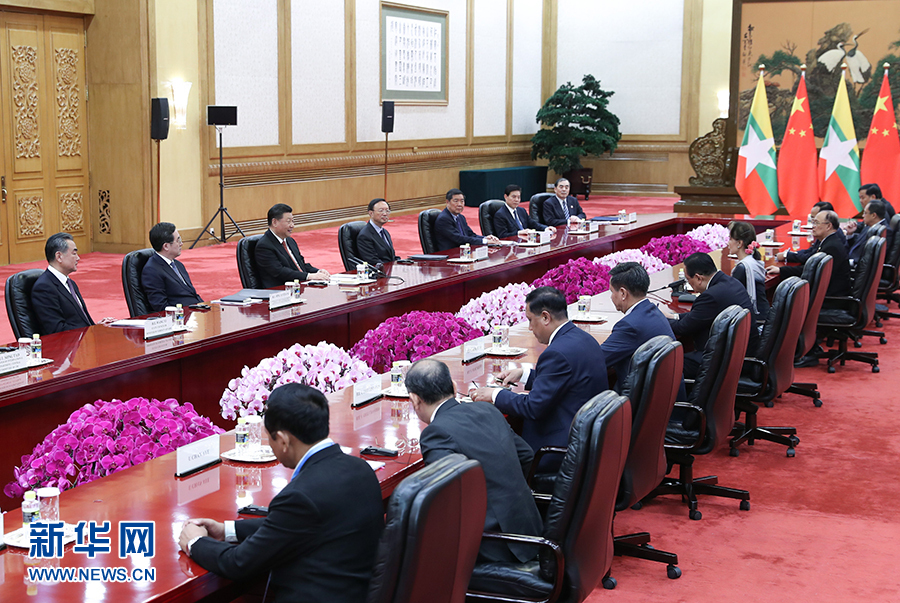 習(xí)近平指出,中緬“胞波”情誼深厚,共飲一江水,是命運(yùn)共同體。新形勢下,中方愿同緬方弘揚(yáng)傳統(tǒng)友誼,密切互利合作,推動中緬關(guān)系不斷向前發(fā)展。雙方要結(jié)合明年中緬建交70周年慶?;顒?,積極開展各層級交往和人文交流,將兩國務(wù)實(shí)合作更多向民生領(lǐng)域傾斜,不斷夯實(shí)中緬友好的民意基礎(chǔ)。中方支持緬方發(fā)展經(jīng)濟(jì)、改善民生,贊賞緬甸政府推進(jìn)國內(nèi)和平和解的努力。中方愿同緬方共同維護(hù)中緬邊境安全穩(wěn)定,切實(shí)保障邊民安全和正常秩序。