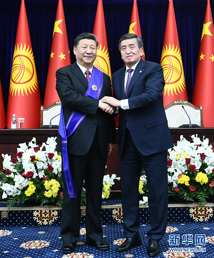 習(xí)近平表示,熱恩別科夫總統(tǒng)授予我“瑪納斯”一級勛章,充分體現(xiàn)了吉爾吉斯斯坦人民對中國人民的深厚情誼,我對此十分珍視。我愿同熱恩別科夫總統(tǒng)攜手努力,深化兩國傳統(tǒng)友好,推動中吉全面戰(zhàn)略伙伴關(guān)系不斷取得新成果,更多惠及兩國人民。