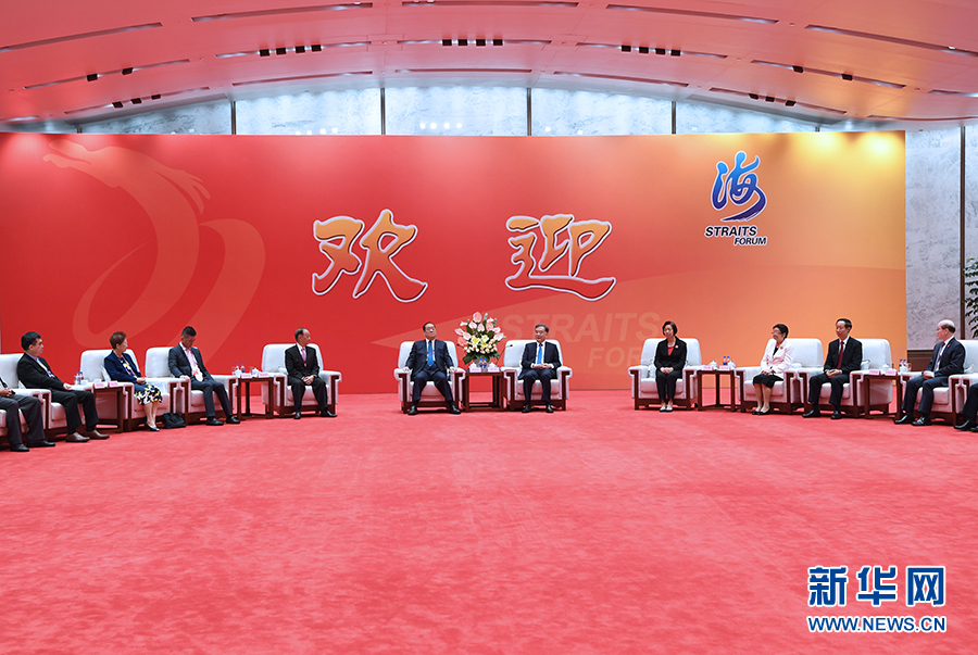 6月16日,中共中央政治局常委、全國政協(xié)主席汪洋在廈門出席第十一屆海峽論壇并致辭。這是論壇開幕前,汪洋會(huì)見出席論壇的部分兩岸嘉賓和主辦單位代表。 新華社記者 饒愛民 攝