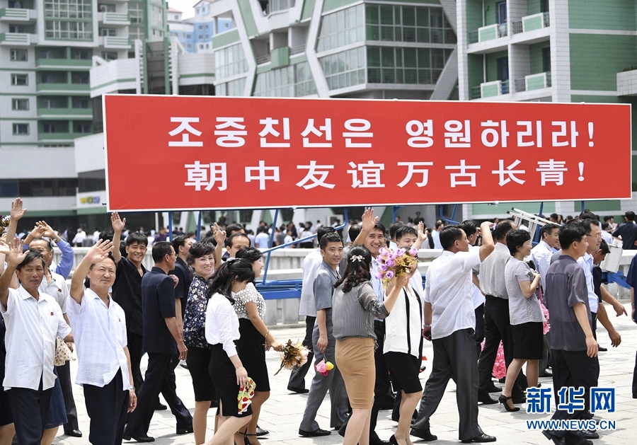 6月20日,中共中央總書記、國家主席習(xí)近平乘專機(jī)抵達(dá)平壤,開始對(duì)朝鮮民主主義人民共和國進(jìn)行國事訪問。這是在平壤街頭歡迎習(xí)近平來訪的朝鮮民眾。新華社記者 燕雁 攝