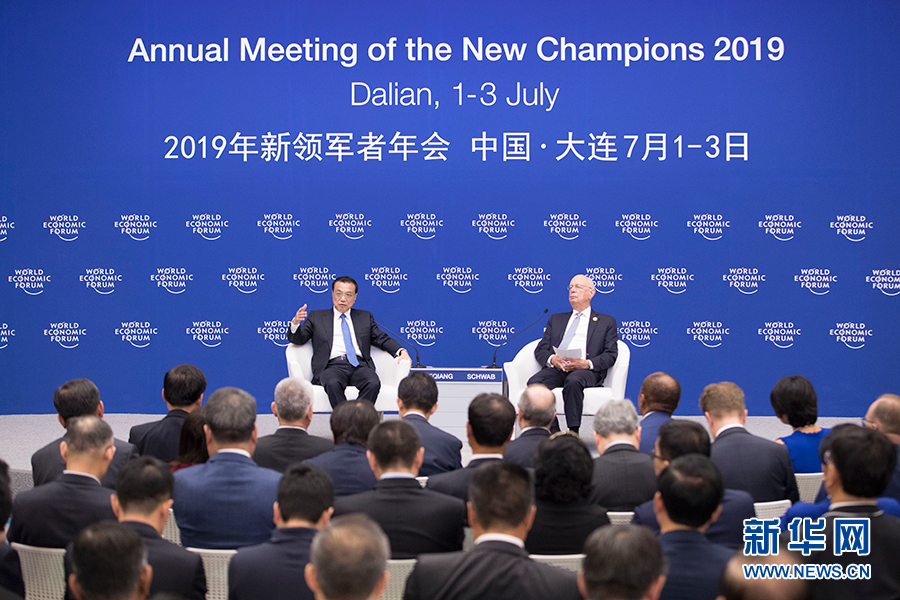 7月2日,國(guó)務(wù)院總理李克強(qiáng)在大連同出席2019年夏季達(dá)沃斯論壇的國(guó)際工商、金融、智庫(kù)、媒體界代表舉行對(duì)話會(huì)。 新華社記者 王曄 攝