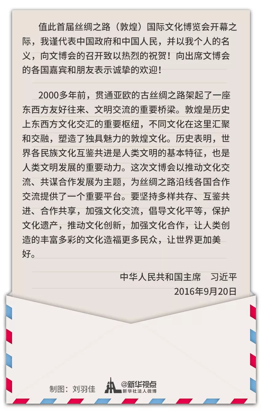習(xí)近平致首屆絲綢之路(敦煌)國(guó)際文化博覽會(huì)的賀信