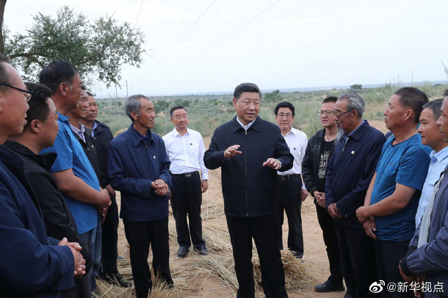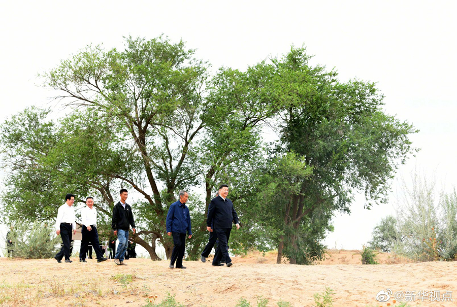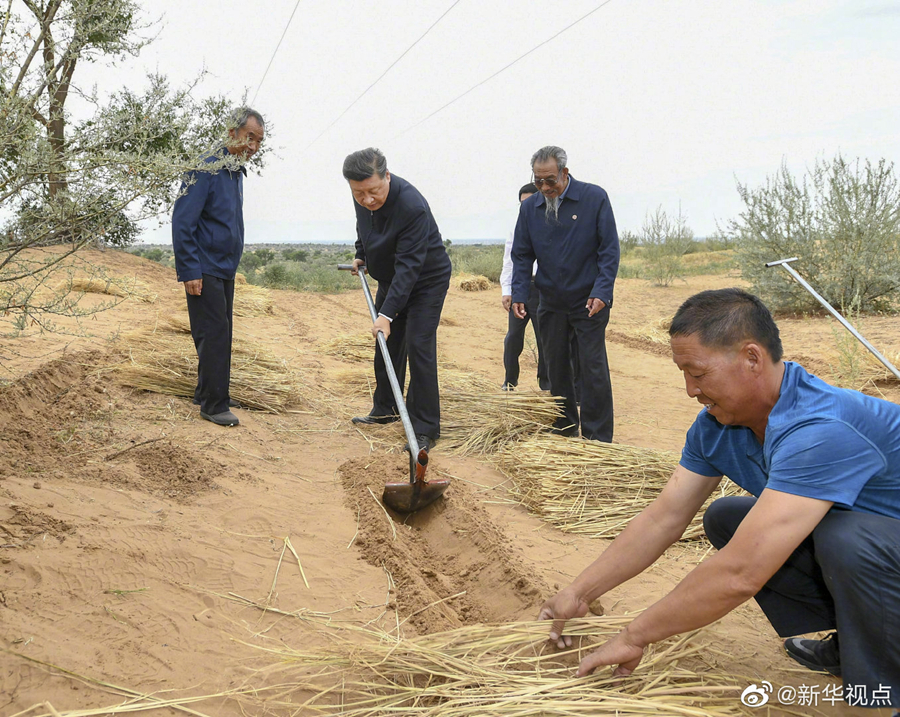 正在甘肅考察的習(xí)近平總書(shū)記,21日來(lái)到古浪縣八步沙林場(chǎng),察看林場(chǎng)風(fēng)貌,聽(tīng)取武威市防沙治沙情況匯報(bào)和八步沙林場(chǎng)“六老漢”三代人治沙造林的感人事跡介紹,還拿起一把開(kāi)溝犁,參與到治沙勞動(dòng)中。習(xí)近平強(qiáng)調(diào),我們要實(shí)現(xiàn)從富起來(lái)到強(qiáng)起來(lái),就要把生態(tài)文明建設(shè)當(dāng)作大事來(lái)抓,建設(shè)美麗中國(guó)。當(dāng)前,生態(tài)文明觀念日益深入人心,要繼續(xù)發(fā)揚(yáng)“六老漢”的當(dāng)代愚公精神,再接再厲,再立新功,久久為功,讓綠色的長(zhǎng)城堅(jiān)不可摧。(文字記者:張曉松、朱基釵 攝影記者:鞠鵬、謝環(huán)馳)?