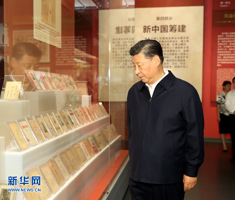 9月12日,中共中央總書(shū)記、國(guó)家主席、中央軍委主席習(xí)近平視察中共中央北京香山革命紀(jì)念地。這是習(xí)近平在香山革命紀(jì)念館參觀《為新中國(guó)奠基》主題展覽,并發(fā)表重要講話。 新華社記者 黃敬文 攝