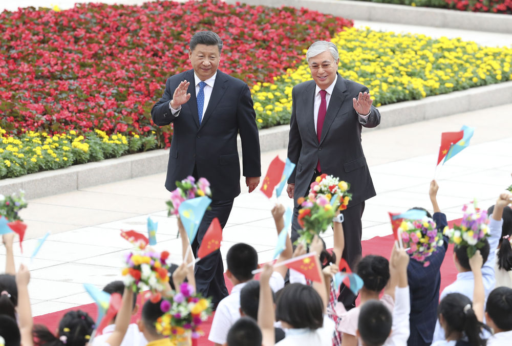 2019年9月11日,國(guó)家主席習(xí)近平在北京人民大會(huì)堂同哈薩克斯坦總統(tǒng)托卡耶夫舉行會(huì)談。這是會(huì)談前,習(xí)近平在人民大會(huì)堂東門(mén)外廣場(chǎng)為托卡耶夫舉行歡迎儀式。新華社記者姚大偉攝