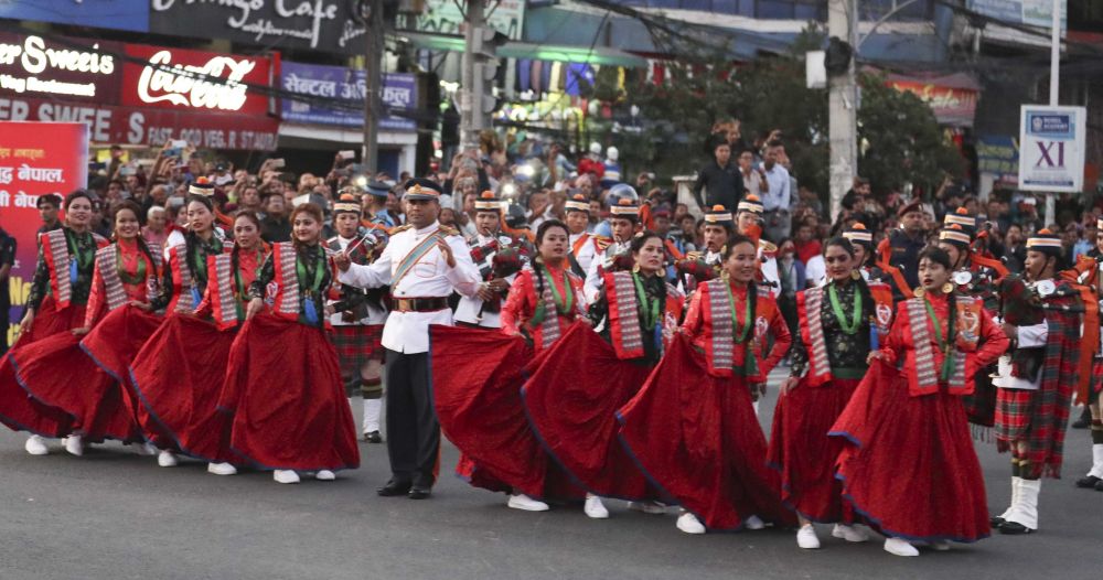 2019年10月12日,尼泊爾首都加德滿都,尼泊爾民眾載歌載舞,熱烈歡迎中國(guó)國(guó)家主席習(xí)近平來(lái)訪。新華社記者丁林?jǐn)z