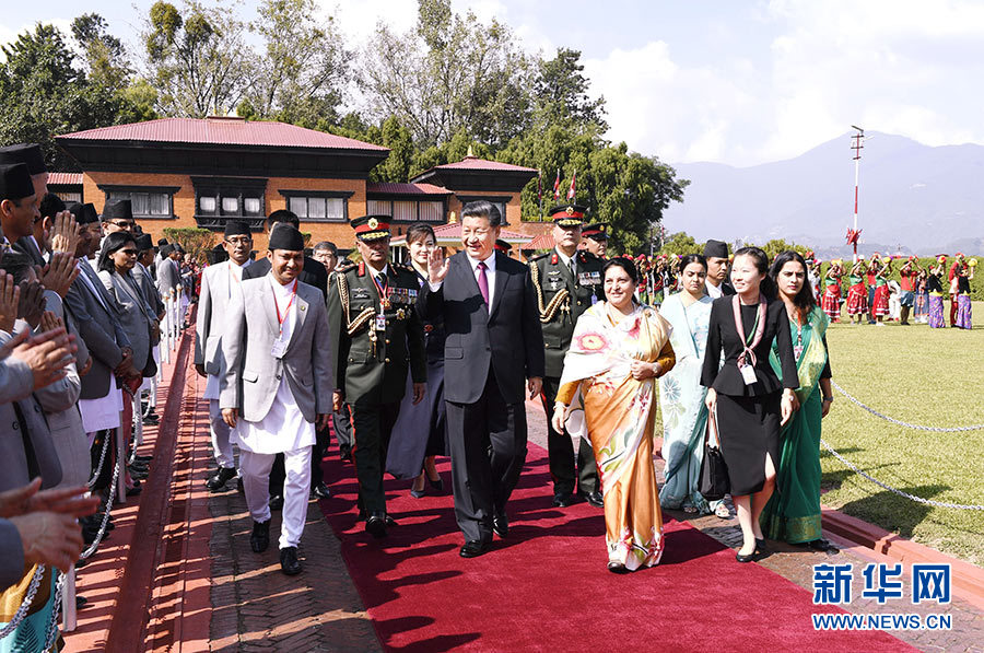 當(dāng)?shù)貢r(shí)間10月13日中午,國(guó)家主席習(xí)近平離開加德滿都啟程回國(guó)。尼泊爾總統(tǒng)班達(dá)里在機(jī)場(chǎng)為習(xí)近平舉行隆重歡送儀式。尼泊爾副總統(tǒng)普恩、總理奧利、聯(lián)邦議會(huì)聯(lián)邦院主席蒂米爾西納、所有內(nèi)閣成員、軍方高級(jí)將領(lǐng)參加。 新華社記者 高潔 攝