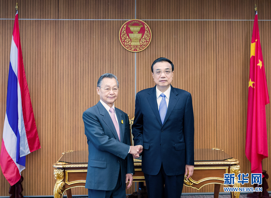 當(dāng)?shù)貢r間11月5日上午,國務(wù)院總理李克強在曼谷新國會大廈會見泰國國會主席兼下議院議長川·立派。 新華社記者 翟健嵐 攝