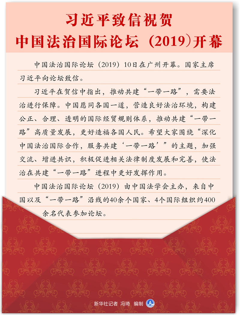 圖表:習近平致信祝賀中國法治國際論壇(2019)開幕 新華社記者 馮琦 編制。