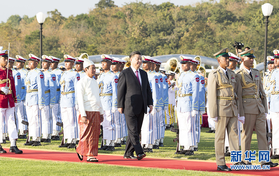 當(dāng)?shù)貢r(shí)間1月17日下午,國家主席習(xí)近平在內(nèi)比都總統(tǒng)府出席緬甸總統(tǒng)溫敏舉行的隆重歡迎儀式。 新華社記者 申宏 攝