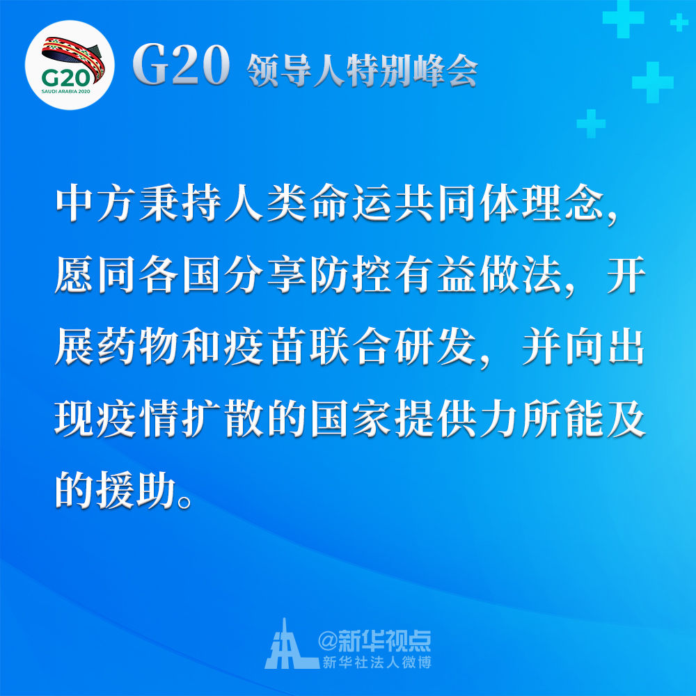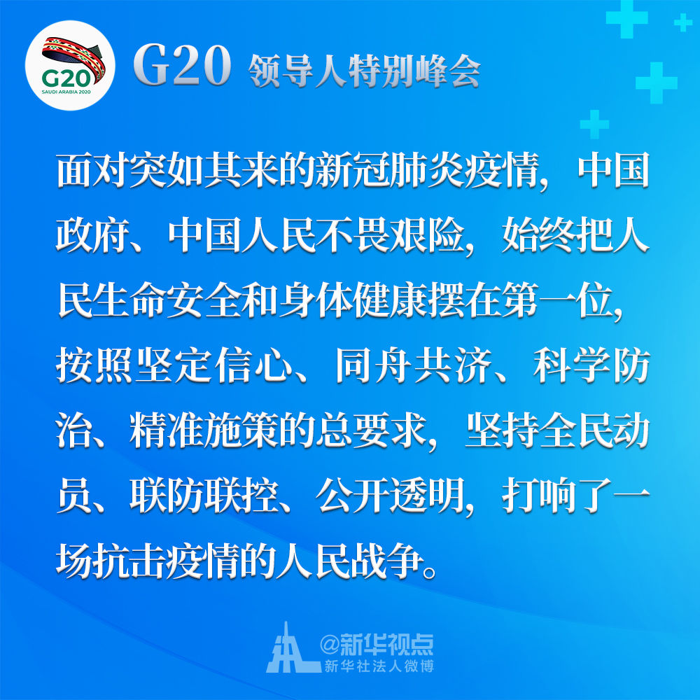 習(xí)近平在二十國集團領(lǐng)導(dǎo)人應(yīng)對新冠肺炎特別峰會上重要講話金句↓
