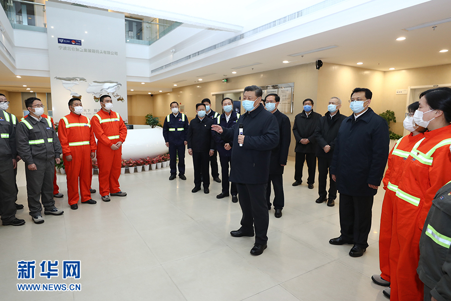 3月29日,中共中央總書記、國家主席、中央軍委主席習(xí)近平在浙江考察調(diào)研。這是習(xí)近平在寧波舟山港穿山港區(qū)碼頭了解港口復(fù)工復(fù)產(chǎn)情況。 新華社記者 鞠鵬 攝
