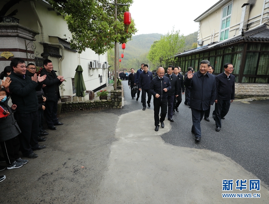 3月30日,中共中央總書記、國家主席、中央軍委主席習(xí)近平在浙江省安吉縣天荒坪鎮(zhèn)余村考察,了解該村多年來踐行“綠水青山就是金山銀山”理念、推動綠色發(fā)展發(fā)生的巨大變化。 新華社記者 鞠鵬 攝