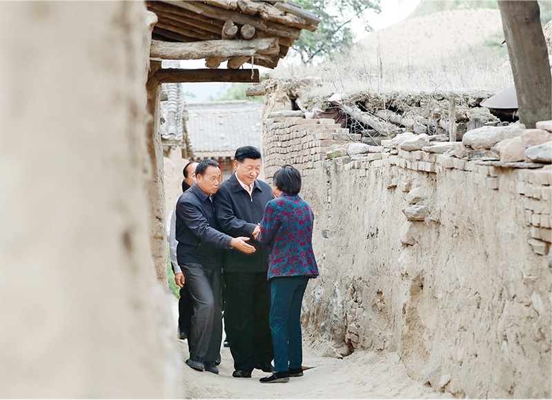 2017年6月21日至23日,中共中央總書記、國家主席、中央軍委主席習近平在山西考察。這是6月21日下午,習近平在忻州市岢嵐縣趙家洼村看望特困戶王三女一家。 新華社記者 龐興雷/攝