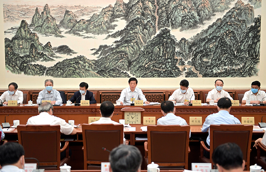6月28日,十三屆全國人大常委會第二十次會議在北京舉行分組會議,審議香港特別行政區(qū)維護國家安全法草案。栗戰(zhàn)書委員長參加審議。 新華社記者 岳月偉 攝