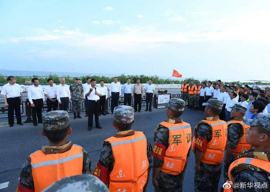 19日下午,正在安徽考察調(diào)研的習(xí)近平總書記來到合肥市肥東縣十八聯(lián)圩生態(tài)濕地蓄洪區(qū)巢湖大堤羅家疃段,察看巢湖水勢(shì)水情。他強(qiáng)調(diào),洪水退后,要防止蓄洪區(qū)內(nèi)出現(xiàn)水退人進(jìn)的現(xiàn)象。我們要實(shí)現(xiàn)人與自然和諧相處,就不能同自然爭奪發(fā)展空間。八百里巢湖要用好,更要保護(hù)好、治理好,使之成為合肥這個(gè)城市最好的名片。(文字記者:張曉松 攝影記者:鞠鵬 王曄 燕雁)