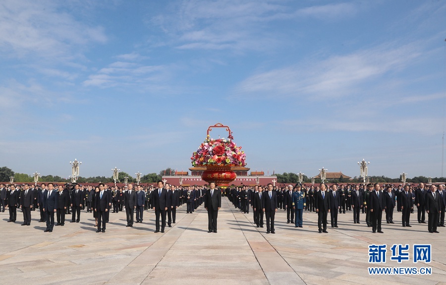 9月30日上午,黨和國(guó)家領(lǐng)導(dǎo)人習(xí)近平、李克強(qiáng)、栗戰(zhàn)書(shū)、汪洋、王滬寧、趙樂(lè)際、韓正、王岐山等來(lái)到北京天安門(mén)廣場(chǎng),出席烈士紀(jì)念日向人民英雄敬獻(xiàn)花籃儀式。 新華社記者 謝環(huán)馳 攝