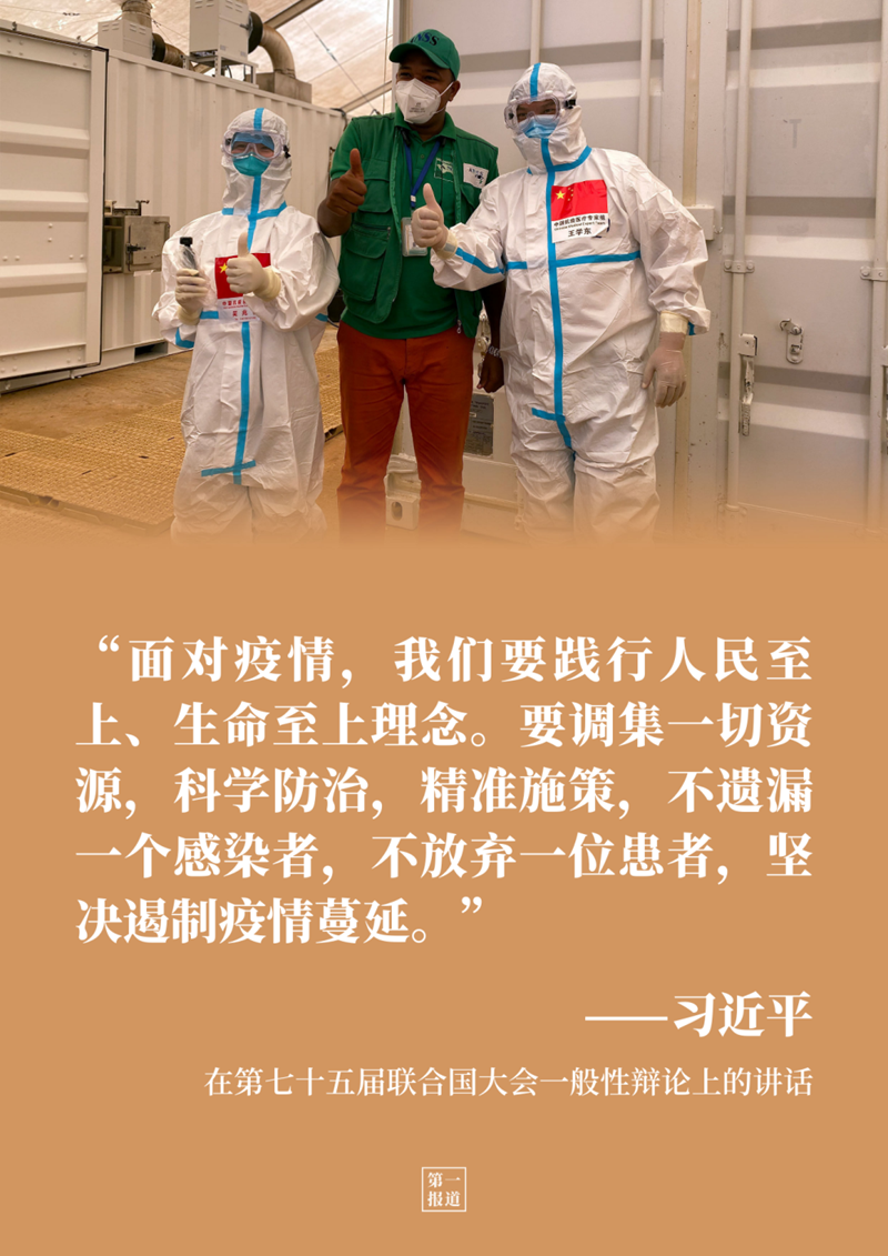 在第七十五屆聯(lián)合國大會一般性辯論上發(fā)表重要講話時,習(xí)主席提出抗擊新冠肺炎疫情的4點倡議,第一條就是“踐行人民至上、生命至上理念”。