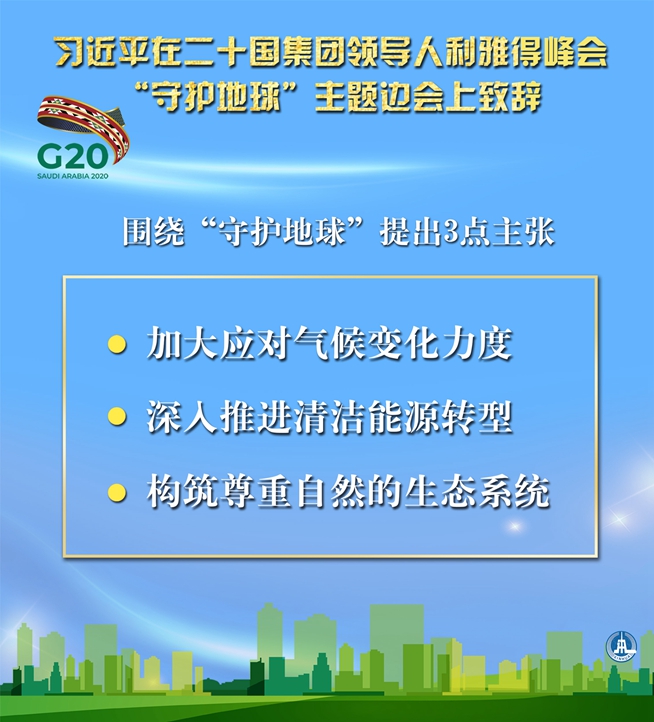 海報|習(xí)近平在二十國集團領(lǐng)導(dǎo)人利雅得峰會“守護地球”主題邊會上致辭