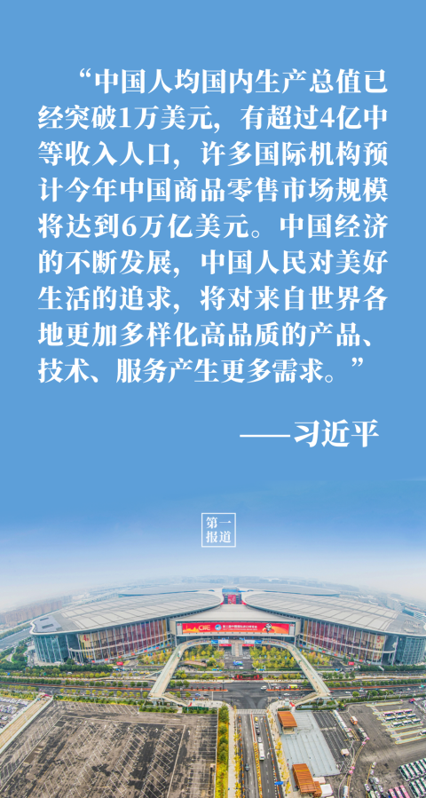 “中國(guó)的發(fā)展離不開世界,世界的繁榮也需要中國(guó)?!闭劦街袊?guó)大市場(chǎng)蘊(yùn)藏的大機(jī)遇,習(xí)主席用事實(shí)和數(shù)據(jù)說話: