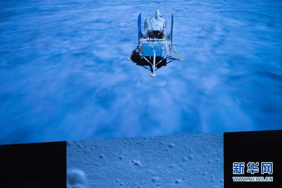 12月1日23時11分,嫦娥五號探測器成功著陸在月球正面西經51.8度、北緯43.1度附近的預選著陸區(qū),并傳回著陸影像圖。這是在北京航天飛行控制中心拍攝的嫦娥五號探測器落月瞬間。新華社記者 金立旺 攝