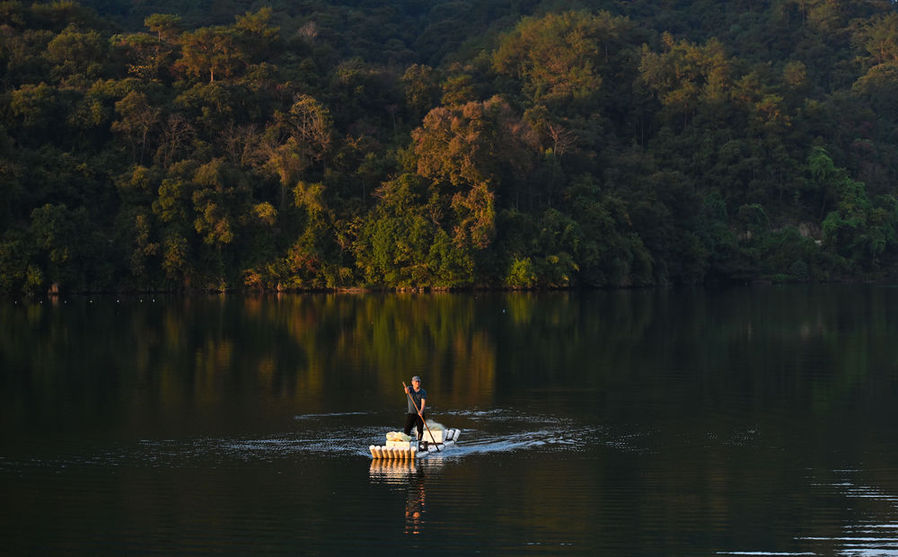 當習近平同志乘坐的竹排行于溪流時,一條鯉魚突然躍上竹排,正好落在他的腳邊。