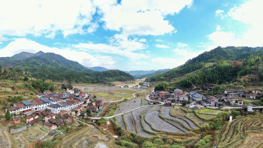 這是11月19日拍攝的大山之中的嶺下村(無人機照片)。新華社記者 姜克紅 攝