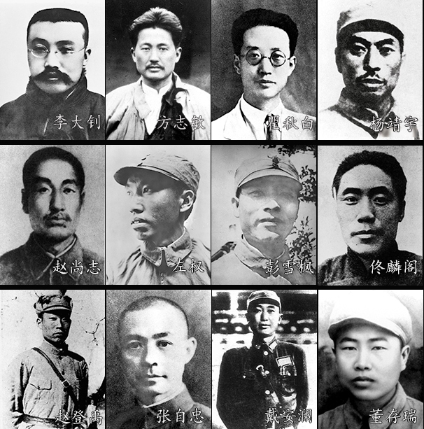 李大釗、方志敏、瞿秋白、楊靖宇、趙尚志、左權(quán)、彭雪楓、佟麟閣、趙登禹、張自忠、戴安瀾、董存瑞……