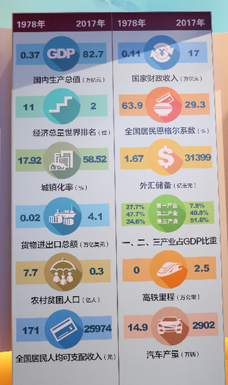 這是一張經(jīng)濟(jì)指標(biāo)對(duì)比圖,詳細(xì)展示了1978年同2017年各項(xiàng)重要經(jīng)濟(jì)指標(biāo)對(duì)比:
