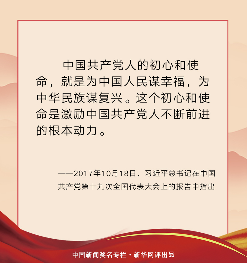 穿越革命、建設、改革的激流,中國共產(chǎn)黨為中國人民謀幸福、為中華民族謀復興的初心使命一以貫之。從石庫門到天安門,從興業(yè)路到復興路,從站起來、富起來到強起來,中國共產(chǎn)黨緊緊依靠人民,跨過一道又一道溝坎,取得一個又一個勝利,為中華民族建樹了彪炳史冊的豐功偉績。99年波瀾壯闊的奮斗前行,中國共產(chǎn)黨初心不改、使命不移,團結(jié)帶領(lǐng)人民把貧窮落后的舊中國變成日益走向繁榮富強的新中國,所付出的一切努力、進行的一切斗爭、作出的一切犧牲,都是為了人民幸福和民族復興。