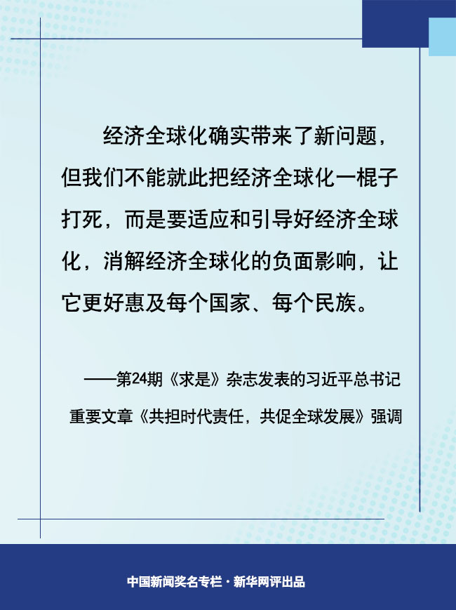 12月16日出版的第24期《求是》雜志,發(fā)表中共中央總書記、國家主席、中央軍委主席習(xí)近平的重要文章《共擔(dān)時(shí)代責(zé)任,共促全球發(fā)展》。文章深刻洞察經(jīng)濟(jì)全球化的歷史大勢,深刻分析世界經(jīng)濟(jì)發(fā)展面臨的共同難題,呼吁國際社會(huì)以合作應(yīng)對挑戰(zhàn),適應(yīng)和引導(dǎo)好經(jīng)濟(jì)全球化。