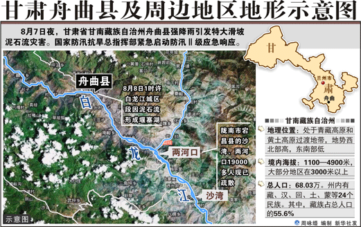 舟曲縣位于甘肅南部,甘南藏族自治州東南部,東鄰武都縣,北接宕昌縣,西南與迭部縣、文縣和四川省九寨溝縣接壤。全縣總面積3010平方公里,轄20個(gè)鄉(xiāng)、2個(gè)鎮(zhèn),210個(gè)行政村,總?cè)丝?3.47萬(wàn)人,其中藏族4.4萬(wàn)人,占32.78%。 舟曲縣地處南秦嶺山區(qū),東南至西北走向的岷山山系貫穿全境。氣候?qū)贉嘏瘞^(qū),海拔高度在1173-4504米之間。地勢(shì)西北高,東南低,地形復(fù)雜,溝壑縱橫,高低懸殊,是典型的高山峽谷區(qū),氣候垂直變化明顯,常有“山下桃花盛開,山上白雪皚皚”的自然景觀,同時(shí)也表現(xiàn)出“十里不同天,一山有四景”的氣候特點(diǎn)。春季溫暖回升快而穩(wěn),秋季溫涼陰雨多。年均降水量400-800毫米,年日照時(shí)數(shù)1842小時(shí),冬無(wú)嚴(yán)寒,夏無(wú)酷暑,素有”隴上桃花源”之稱。 |