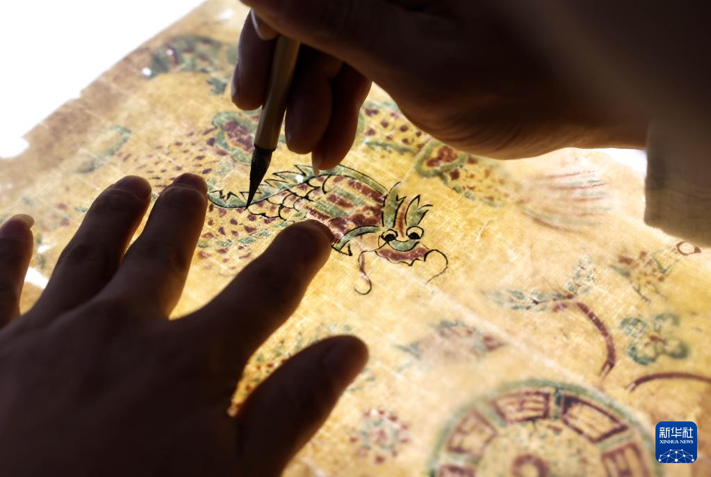 2月10日,在童寿记木版年画工作室,童敏在创作年画粉本。