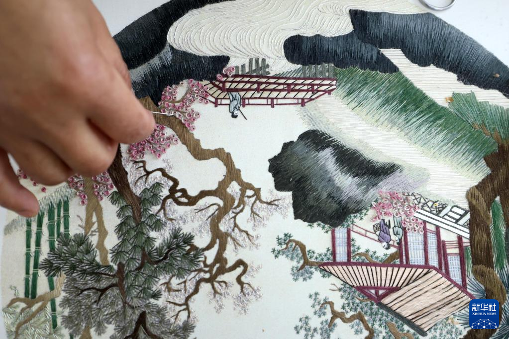 近年来,江苏省淮安市淮安区博里镇传承发展民间艺术,深入挖掘“博里农民画”文化精髓,不仅举办农民画培训班,还将“博里农民画”制作成为刺绣作品。目前,博里镇有农民画画家200多人、绣娘超过50人,作品远销海内外。“博里农民画”等“指间技艺”不仅实现了“文旅融合”带动当地发展,还吸引周边一批外出务工人员返乡就业。
