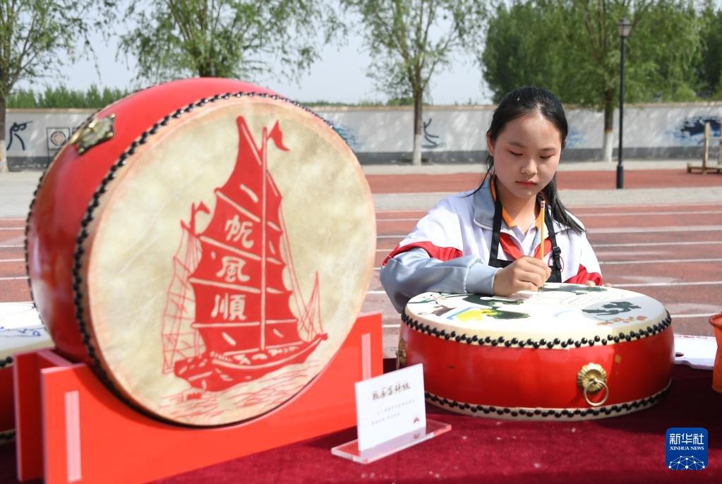 4月19日,门楼中心小学的学生在活动中绘制鼓面。