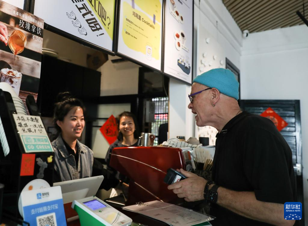 托尔斯滕·尤雷尔在景德镇一家咖啡店点单(4月20日摄)。