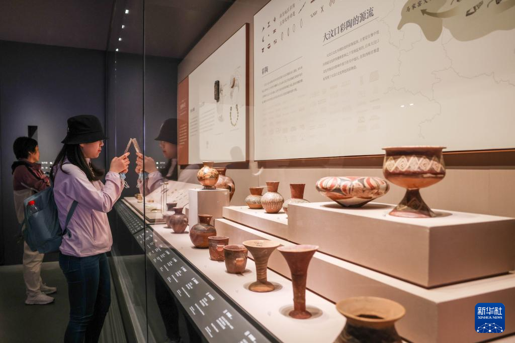 5月16日,观众在参观“海岱日新——山东历史文化展”展出的史前时期陶器。