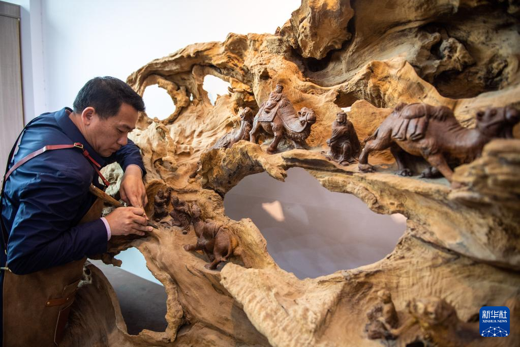 洞口木雕发祥于湖南省邵阳市洞口县,历史悠久,上个世纪80年代以来,洞口木雕产品远销海外。傅立先是洞口木雕非遗传承人,他的爷爷傅满山和父亲傅金林曾是木雕工艺厂的老师傅。近年来,傅立先对洞口木雕的创作方向进行新的探索,把传统工艺与现代文化相结合,创作出很多精美的木雕作品。