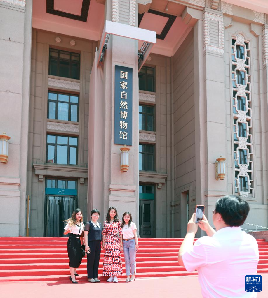 6月5日,人们在国家自然博物馆前留影。