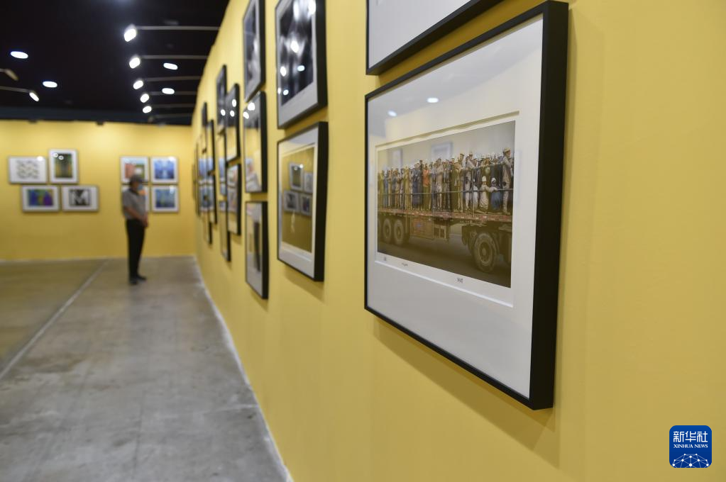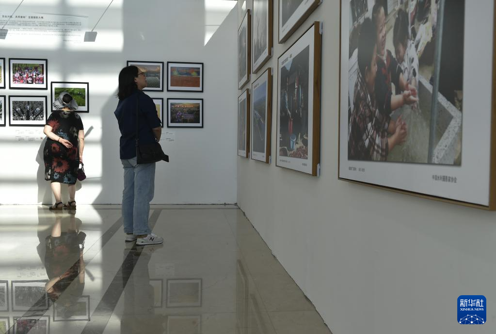 6月22日,参观者在位于三门峡市的中国摄影艺术馆内参观拍摄展出的照片。