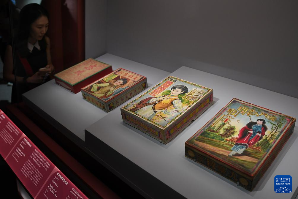 9月7日,媒体记者在展览上观看十九世纪和二十世纪澳门服饰包装盒。新华社记者 陈铎 摄