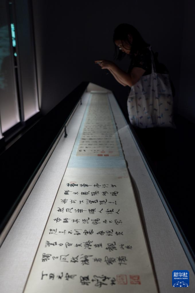 9月15日,观众在展览上拍摄“董其昌临王羲之草书手卷”。