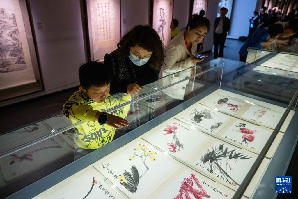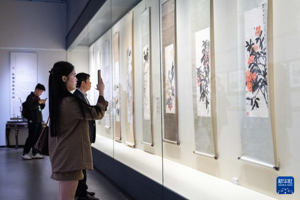 11月5日,在湘潭市博物馆,观众在观看齐白石作品。