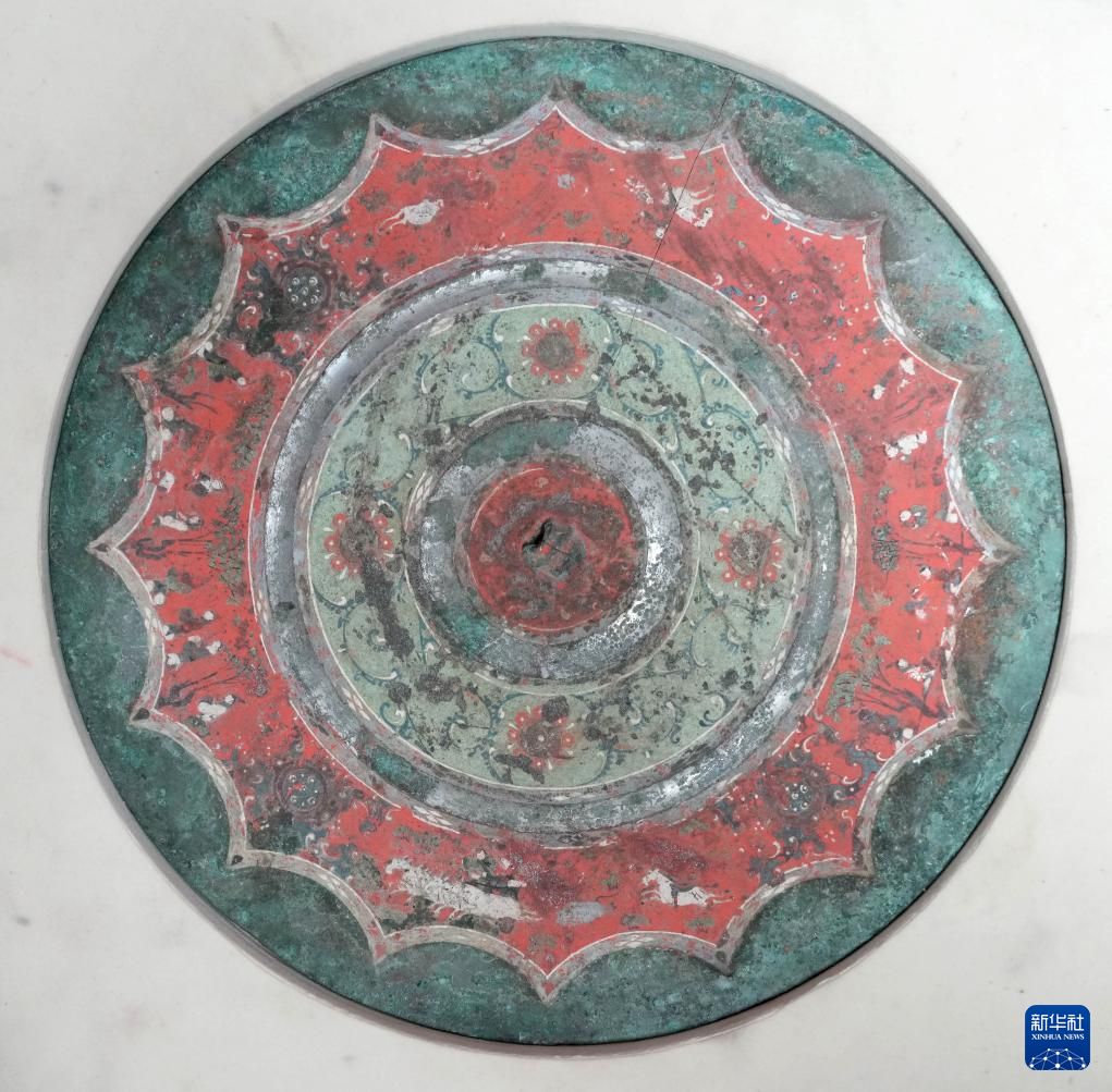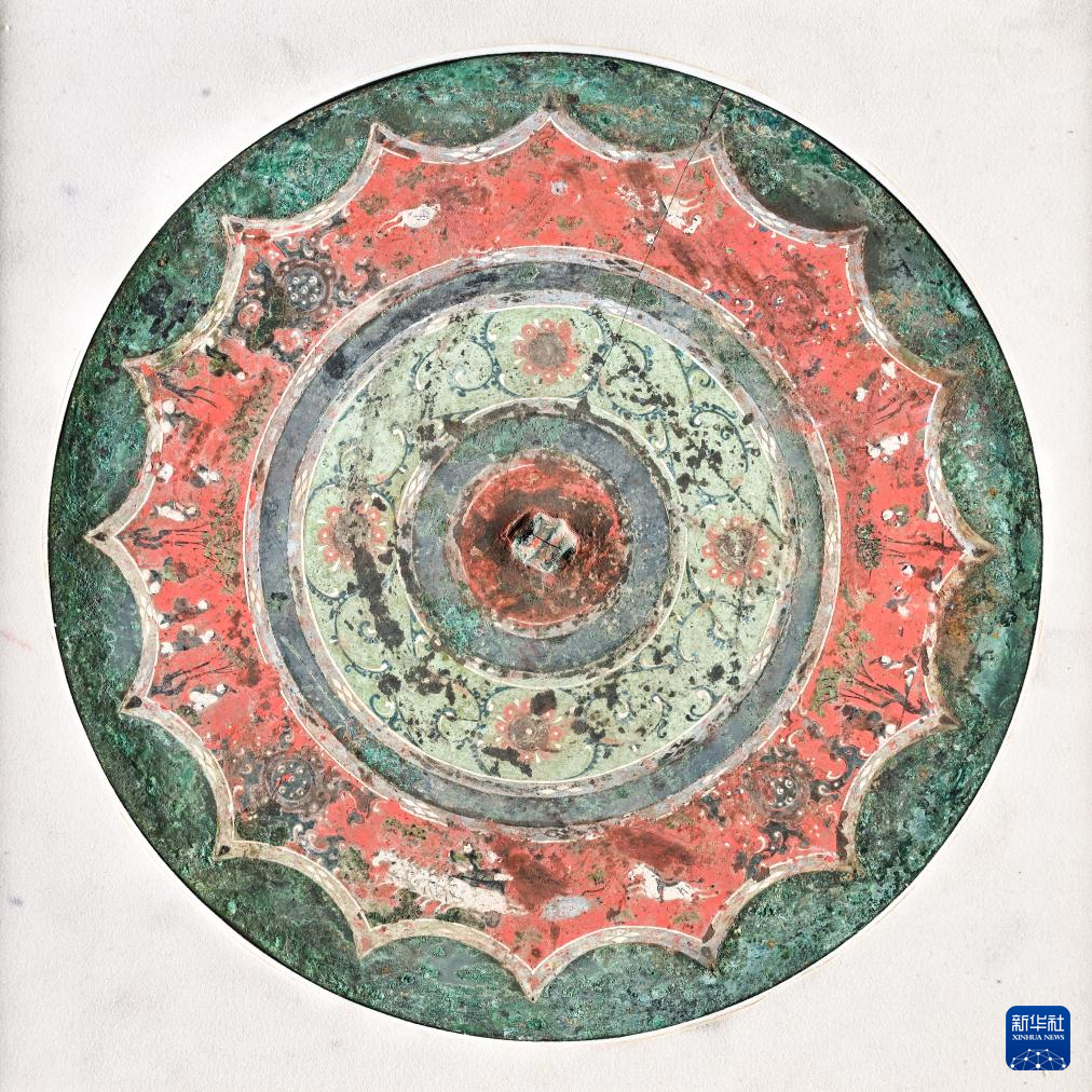 铜镜是古代妆容工具,具有重要的艺术和科学价值,彩绘铜镜是铜镜中的珍品。1963年在陕西西安红庙坡村出土的西汉彩绘人物车马镜,距今已有2000多年历史,色泽艳丽,精美绝伦,被视为中国古代彩绘铜镜代表作之一,入选国家文物局发布的《第三批禁止出境展览文物目录》。