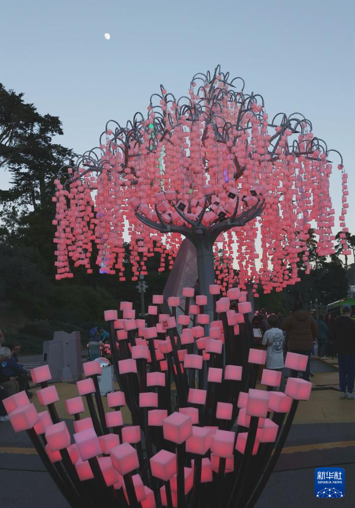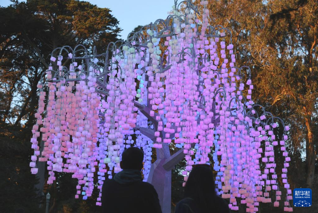 这是12月23日在美国旧金山金门公园拍摄的灯饰。