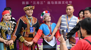 4月9日,申涛在位于营口市的家中指导女儿申圣丹进行缂丝创作。